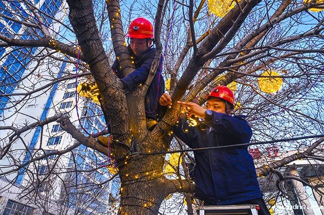 连日来,龙泉能源公司组织人员在食堂、生产楼、培训楼门口布设节日彩灯和灯笼。数九寒冬并没有影响安装人员的工作热情,忙碌的身影成为冬日里一道温暖的风景。一串串彩灯迎风摇曳点缀着园区的景色。有的负责挂彩灯,有的负责排线接线,工作配合十分默契。食堂门口景观树缠绕太阳、月亮形状氛围彩灯及串灯400米,生产楼前缠绕彩灯300米。串灯、彩灯和灯笼进行交错装饰,突出多样视觉效果,渲染出红红火火、喜气洋洋的节日氛围,让整个矿区年味更浓。