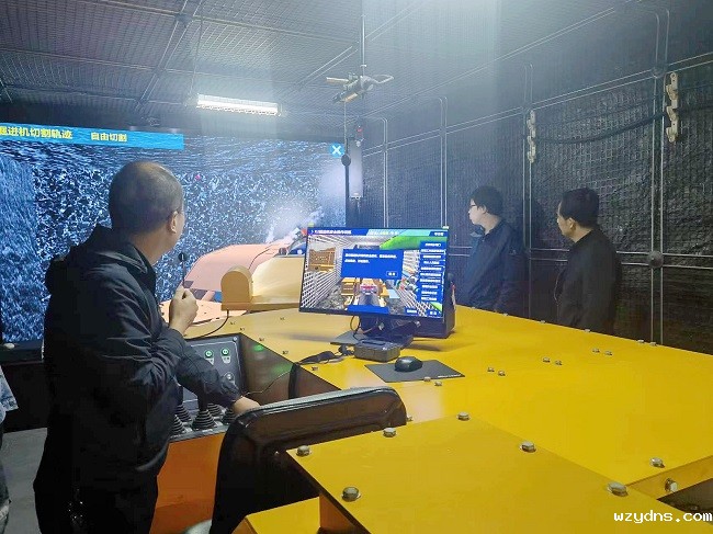 交叉互动,沉浸体验,打造高效课堂。培训基地的实操训练区配备有模拟掘进巷道、井下常用开关电气设备、带式输送机教学装置、综掘机模型及实操智能考试系统,通过模拟综掘巷道和井下实景,实现虚拟场景与仿真综掘机互动,并伴有场景音效和光效,能够完整体现整个掘进作业标准检查和操作工作流程,既有沉浸感,又有交互性。