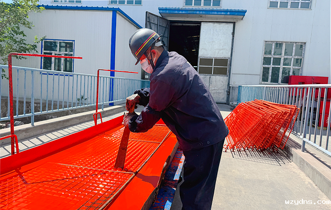 图为砂墩子煤矿机修厂职工对胶带运输机护网进行浸漆作业。