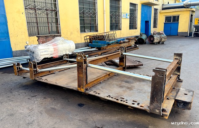 该公司机修厂多次到回撤工作面进行现场调研,设计制作了专用装车平台架。该平台架采用高强度工字钢结构,在原有平板车的基础上,按照支架拆解规格设计了可调节装车装置,平台表面焊接可调节支架装置,底部精准开孔,用螺丝固定在平板车上,两侧设置护栏精准打孔,保障支架装车后稳定安全,使支架能够平稳安放到运输车上。
