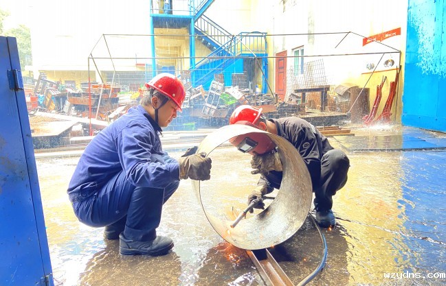 太原煤气化神州煤业公司扎实开展机电设备检修工作,认真制定检修方案,明确检修步骤、人员分工以及安全注意事项,对机电设备进行了全面检修、维护,及时消除潜在的安全隐患,全力保障井下安全生产。图为检修人员正在加工带式输送机电机风叶防护罩。