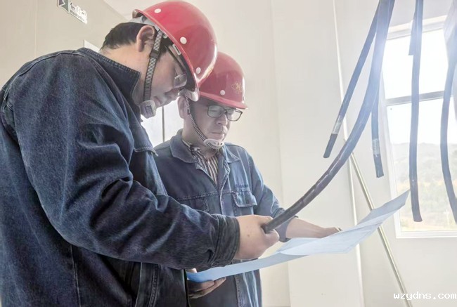 图为该项目技术人员正在核对交流屏外部电缆接线。
