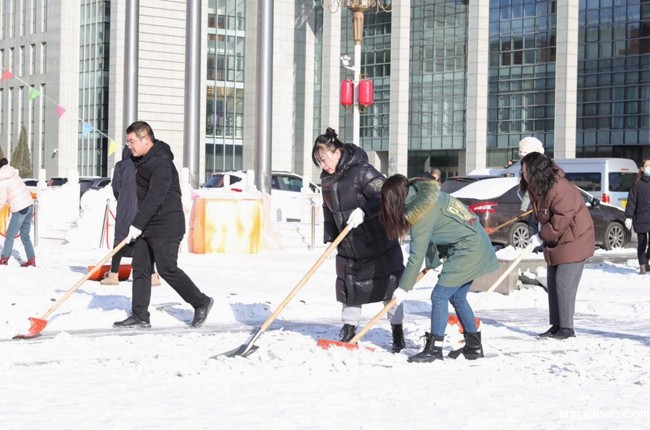 近日,受强冷空气影响,迎来了春节后第一场降雪,为保障职工群众出行安全,煤业集团机关事务处组织全体职工清扫办公楼广场积雪。清扫现场,大家不畏严寒、分工有序、齐心协力,拿着推雪板、铁锹、扫帚等工具投入到清雪工作中,热火朝天的劳动场面让寒冷的天气显得暖意浓浓。经过一个小时奋战,地面的积雪被清扫干净,为出行的职工群众提供了方便。
