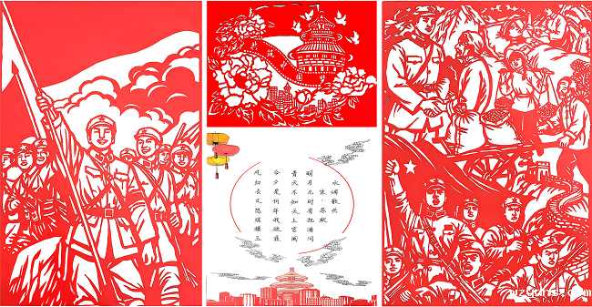 艺术展现场,各类艺术作品精彩纷呈。其中,剪纸作品更是凭借其独特的艺术魅力与深厚的文化内涵,成为展览中备受瞩目的一大亮点。有的借助古典建筑与圆月元素,展现出中秋传统韵味,传递了中秋佳节团圆美满的美好祝愿,让职工感受到中华优秀传统文化的深厚底蕴;有的围绕国庆主题,或以“共筑中国梦”字样,抒发对祖国繁荣昌盛的赞美与祝福,或选取革命题材,刻画“军民鱼水情”“鲜红的旗帜”等场景,激发大家的爱国情怀与奋斗精神。
